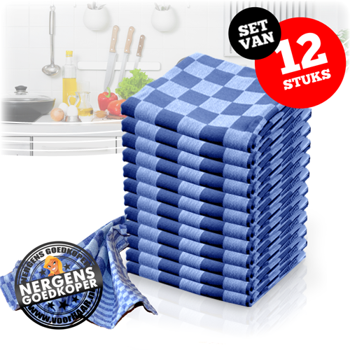 Dat je in je keuken goed en degelijk materiaal tot je beschikking wilt hebben, dat is logisch. Met deze old time favorites heb je niets beters te wensen! Deze theedoeken zijn van dusdanige kwaliteit dat ze ook altijd in de horeca worden gebruikt. En daar moeten ze toch wel tegen een stootje kunnen! Ze zijn niet kapot te krijgen en drogen perfect. Elke doek is voorzien van ophanghaakjes, zodat het haakje wat je daarvoor hebt gewoon benut kan worden, zonder dat je doek er telkens af valt. Het blauw-wit geblokte design doet het in elke keuken goed, dus daar hoef je niet over te twijfelen. Je krijgt vandaag op voorHAAR.nl flink wat voordeel op deze set van 12 theedoeken, dus grijp vooral je kans!