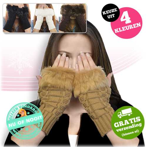 Aangezien de winters in Nederland lang kunnen duren, gaan we voorlopig maar van het ergste uit.. En dat zou zomaar kunnen betekenen dat het nog koud zal zijn tot minstens februari. Met een beetje pech maart of april. Zorg dus maar dat je goed bent voorbereid met een paar leuke handschoenen. En niet alleen leuk, maar ook super comfortabel! Doordat de handschoenen vingerloos zijn, kun je gewoon zonder gedoe je handen blijven gebruiken terwijl je de handschoenen nog aan hebt. Geen gedoe dus wanneer je je sleutels moet pakken, iets uit je tas moet halen, of even moet afrekenen in de winkel. Ideaal! De handschoenen zijn beschikbaar in 4 kleuren, dus maak snel je keuze!
