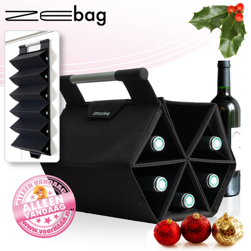 Alle wijnliefhebbers (en die zijn er zo rond de feestdagen nog véél meer dan de rest van het jaar) opgelet! Vandaag vind je op voorHAAR.nl een unieke methode om wijnflessen volledig in stijl op te bergen en met dezelfde flair mee te nemen. Ingeklapt functioneert deze unieke Zebag wijnfleshouder als een draagtas welke ruimte biedt aan 6 standaard wijnflessen. Waar je ook heen gaat, vanaf nu neem je je favoriete drankje echt overal mee naar toe. Uitgeklapt functioneert de Zebag als een wijnrek welke plaats biedt aan maar liefst 11 wijnflessen. Uitgeklapt kun je de Zebag horizontaal neerleggen of verticaal ophangen. Wijn drinken was nog nooit zo leuk! Alleen vandaag verkrijgbaar of zolang de voorraad strekt. Bestel op tijd, dan wordt je bestelling vandaag nog verzonden!