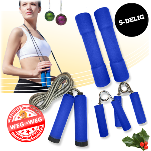 Met de feestdagen nog in volle gang, betekent dat vaak extra veel lekkernijen, flink eten en drinken. De start is bij de meesten al in het begin van de maand gemaakt met strooigoed, maar met al het kersteten nog in en om je heen én oud & nieuw nog in het verschiet, moet je nu actie ondernemen. Schaf vandaag deze 5-delige fitnessset aan, om direct na al het feestgedruis aan de slag te kunnen met je body. Gelukkig hoeft trainen niet zwaar te zijn, het moet vooral leuk blijven. Het voordeel van deze set is dat je deze oefeningen altijd en overal kunt doen. Dat geldt voor het springtouwen, maar ook voor oefeningen met de halters en knijphalters. Het hoeft allemaal niet zo moeilijk te zijn! Onderneem dus actie, door te beginnen met aanschaffen van deze 5-delige fitness set. Zo kun jij binnen enkele dagen flitsend van start gaan!
