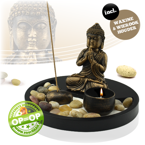 Extra sfeer en warmte in huis is nooit weg. Met deze Buddha decoratie heb je meteen alles in een. Het ziet er leuk uit, het geurt heerlijk door de wierook - waarbij een houder is geleverd - en het geeft licht door het waxinelichtje - ook met houder uiteraard -. Naast deze items is deze deal ook voorzien van de stenen en zand voor de opvulling van het geheel. De natuurlijke kleuren zorgen ervoor dat het in elk interieur goed past en een waar sfeerverhogend vermogen creëert. Pik deze aanbieding daarom vandaag snel mee, want op is op! Alleen vandaag beschikbaar tot 23:59 uur of zolang de voorraad strekt. Tot morgen, dames!