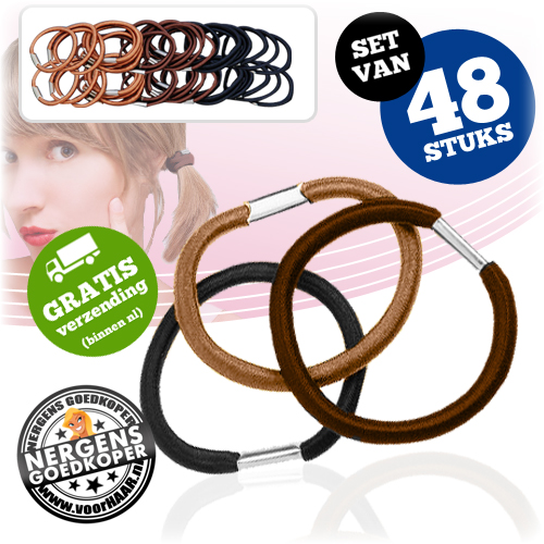 Je haar op een staart, in een vlecht of een knotje. Het maakt niet uit wat je er mee wilt doen, bij bijna alle opties zul je toch echt een elastiekje moeten gebruiken. En juist op het moment dat je écht niet zonder kan, hebben die dingen nog wel eens de neiging om kapot te klappen. Wanneer je deze topaanbieding van voorHAAR.nl in huis haalt, heb je een mooi voorraadje klaarliggen! De set bestaat maar liefst uit 48 stuks! Zwart, bruin en camelkleurig. Voor elk wat wils of voor de afwisseling. Scoor gauw deze prijstopper, want voor je het weet is de aanbieding alweer verlopen!