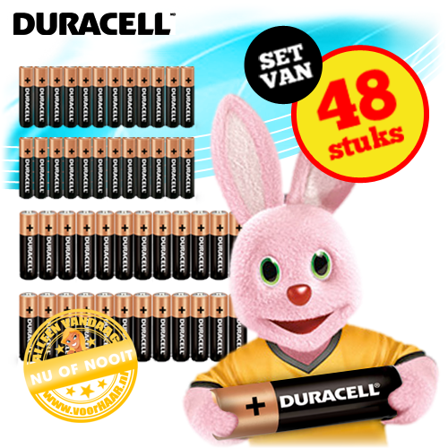 Heerlijk, met het aanbreken van de lente, heeft iedereen weer frisse energie en zin in de komende tijd. Alles begint weer meer te leven, maar het kan zomaar zijn dat je apparaten er niet zo over denken. Geen enkel probleem met een nieuw Duracell batterijtje! Met zo'n energie-boost kan elk apparaat er weer voor ruime tijd tegenaan. Met deze set van maar liefst 48 batterijen van Duracell, is jouw omgeving voorlopig niet uit te putten. Met de deal van vandaag heb je de keuze uit 48 stuks AA (penlite), 48 stuks AAA (mini-penlite) of een gezonde mix met 24 stuks van beide. Niet over twijfelen en gewoon meteen doen, want ze zijn nog bruikbaar tot 2019!