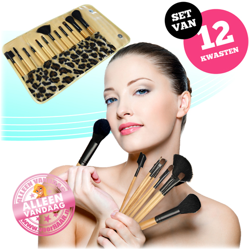 Hoe je elke ochtend de deur uitstapt is eigenlijk je persoonlijke visitekaartje. Daar wil je daarom ook wat van maken. Onderzoek heeft uitgewezen dat de vrouw gemiddeld maar liefst 79 minuten voor de spiegel staat! Daar mag je dan ook wel wat degelijk gereedschap bij gebruiken. Met de set van vandaag ben je wat betreft het aanbrengen van je make-up in een keer klaar. De set bestaat namelijk uit 12 verschillende kwasten en brushes. Groot, klein, dik en dun: het zit er allemaal in! En hetgeen waar het inzit, daar wordt ook elke vrouw van binnen gelukkig van. Het overzichtelijke etuitje met panterprint houdt niet alleen alles netjes op zijn plaats, maar heeft ook nog eens een beschermende functie voor je gerei. Beter kun je niet wensen!