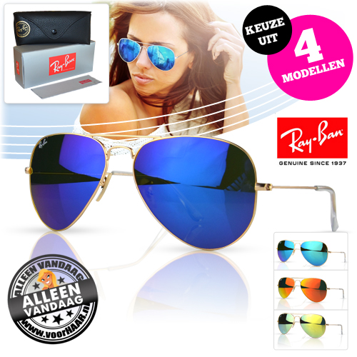 Oh nee hoor.. de zomer is nog lang niet over! Voorlopig hebben we nog flink wat zon tegoed. Gelukkig maar! Het mooie van een zonnebril scoren op dit punt van de zomer, is dat je heerlijke korting kunt pakken! En met een Rayban Aviator weet je dat je altijd goed zit, daar heb je nog járenlang plezier van. Omdat het algemeen bekend is dat vrouwen moeite hebben met keuzes maken, krijg je vandaag 'slechts' de keuze uit 4 kleurrijke uitvoeringen.Welke wordt de kleur van jouw voorkeur? Welke Rayban straalt in het zonnetje op jouw neus?!